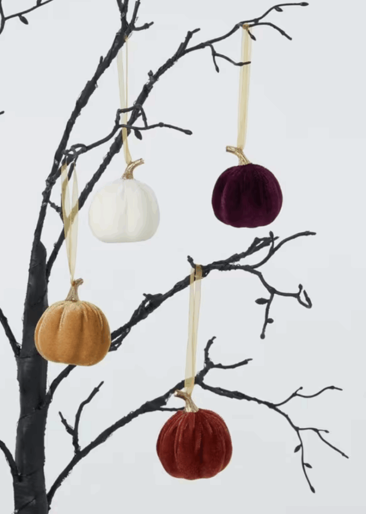 And if you’d prefer to keep your pumpkins outside the kitchen, what about hanging them on a tree? Decorate a garden or an indoor plant with these velour designs in autumn colours, and bring a pop of tasteful festivity to your home.