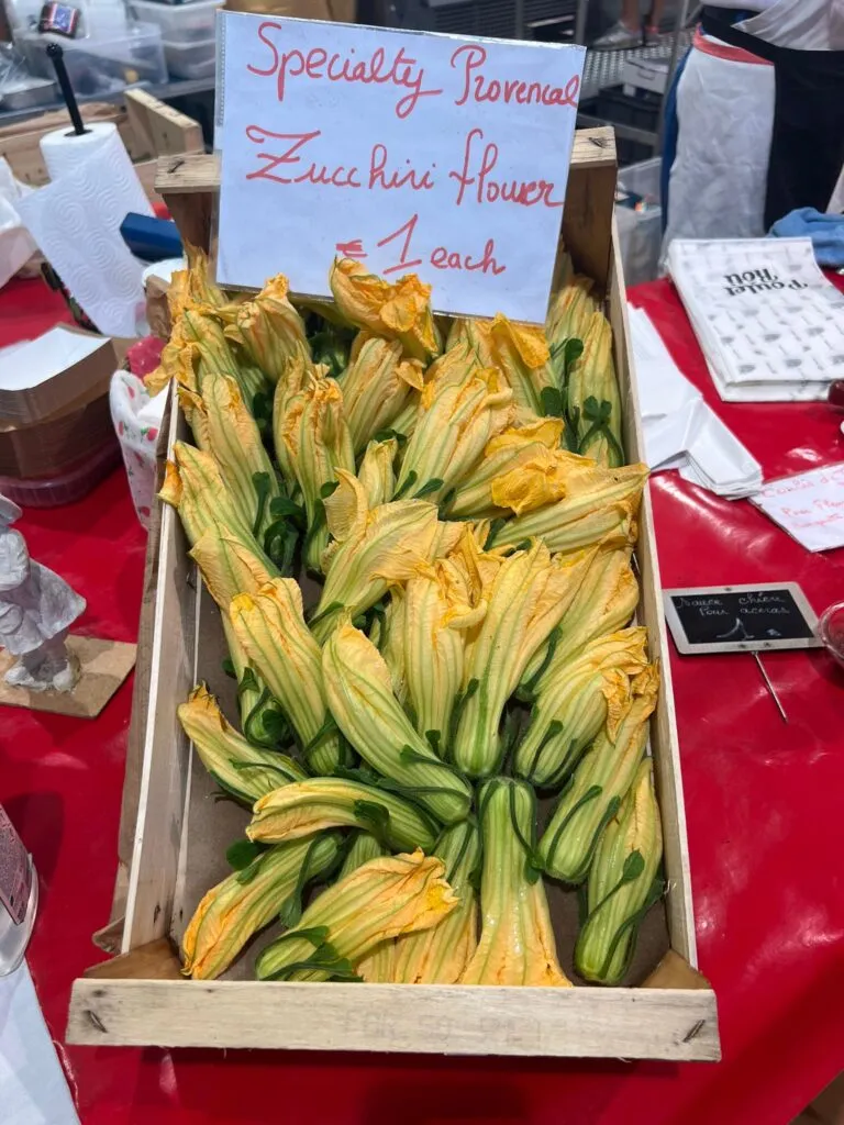 The vibrant yellow zucchini flowers were still standing to attention and could have had bees still buzzing in them, while the raspberries were pinkly plump. Our mission however, was to film a traditional dish of this area called Socca with Jean-Luc.