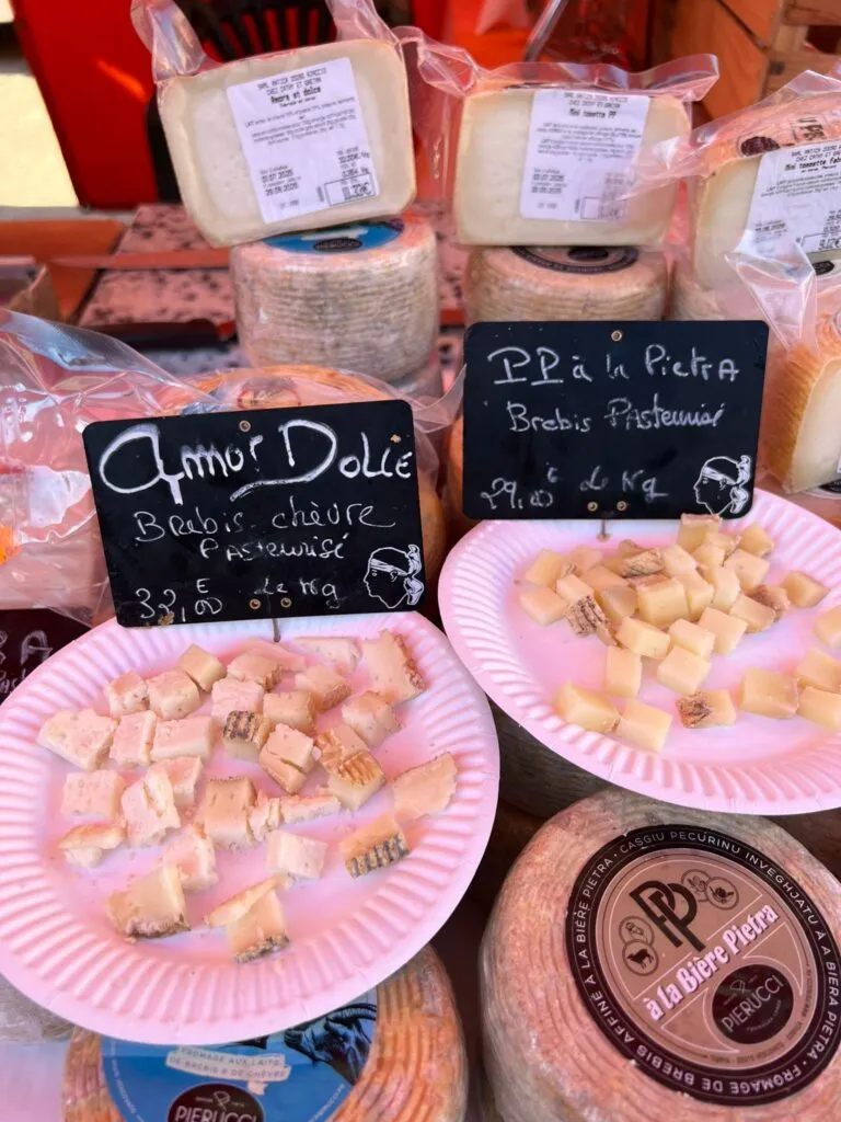 Ajaccio is Corsica’s capital city. Everywhere is decorated with signs for Napoleon Bonaparte who was born here. It’s not just famous for naval officer history; its also renowned for charcuterie so we were right to be stopped in our tracks by the deliciousness of it! But our sampling had a purpose: we wanted some Corsican Brocciu cheese.