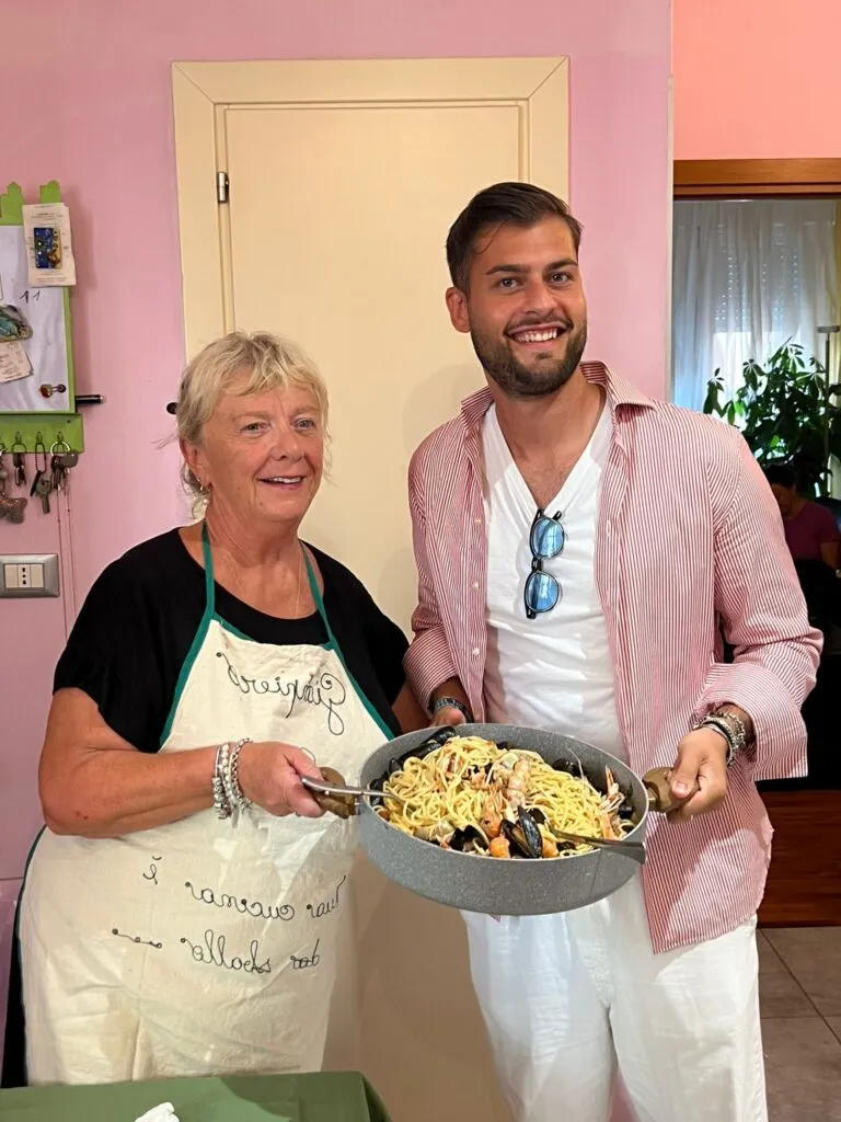 Given we were back in Italy, pasta was firmly back on the menu. We travelled with our goods to meet granny Laura and her charming grandson and they prepared spaghetti ai frutti di mare.