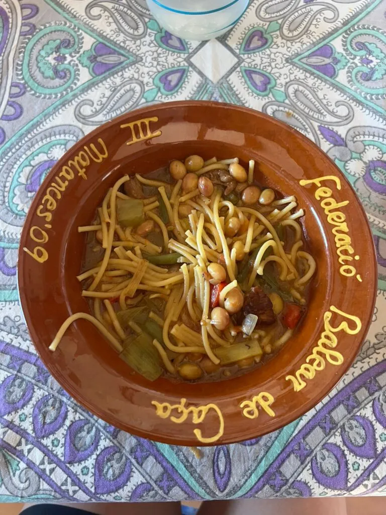 They made us fideus, a short spaghetti-like pasta cooked in soup; it’s similar to minestrone.