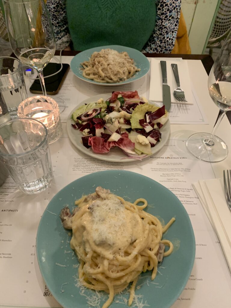 So how did Masha get involved? “I grew up in a restaurant kitchen, my mum was a chef. Actually, before she became a chef, she was a model. She’s a really good-looking woman and worked in Milan for many years.” After some time living a cosmopolitan existence, her parents decided to leave the city for a more sustainable life in the countryside. “They started this small business in ’85. I didn’t have any relatives here, no grandmother, no grannies, no auntie, no uncle, zero, nothing. I just grew up with my mum in the kitchen. It was like a different era.” It was in her childhood that Masha learned the pasta techniques which form the foundation of Lina Stores’ restaurants. “I was able to do the pasta with the rolling pin and tagliatelle in a traditional way.” Yet it wasn’t just the pasta process that excited her: “I did also a lot of like experiments.” Her creations were influenced by seasonal produce: “I used to have new and fresh ingredients every day. I changed the menu every day in our family restaurant, based on what was available in the garden and between the animals on the farm. This made me very curious about the cuisine; to mix the influence from around the world and led me to research all Italian cuisine, not just the Umbrian one.” That’s very much the ethos of Masha and her team: they’re not bound by tradition; modern modifications are encouraged. Masha’s favourite place to innovate is with ravioli, tortelli and agnolotti: “Yeah, I love filled pasta. I love to play with the fillings a lot. And I work a lot with vegetables. I dry [them] in the oven, to create a kind of a dust so I can colour pasta. You can do this with the beetroots, peanuts, turmeric.”