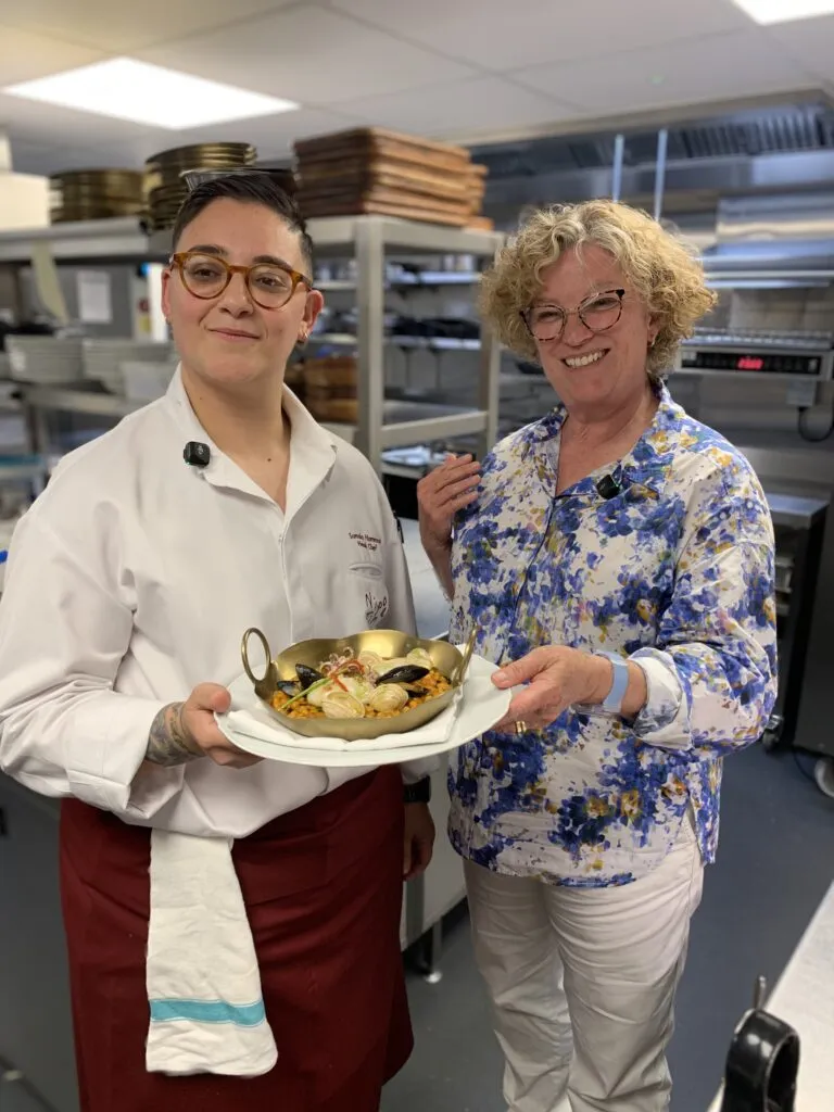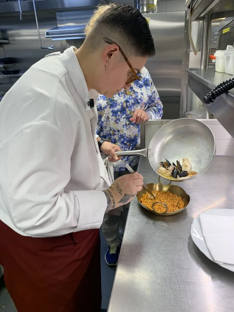 Somaia grew up wandering Puglia’s markets and watching her Nonna work her magic in the kitchen. Those flavours, memories, and recipes passed down through generations are the soul of Nipotina’s menu and much like what we do at Team Pasta Grannies, we loved the idea of telling stories and shared traditions through the food on the plates, so we just had to go and check it out. She told us about her Nonna Lina’s ragu and ricotta tart which have both made it to the menu and she demonstrated how she makes the delicious caramelised fig salad, and fregola with frutti di mare that remain stand-outs on her menu. But before we did, we sat down and had a chat with her about her culinary influences, and her vision behind this beautiful setting for dining.