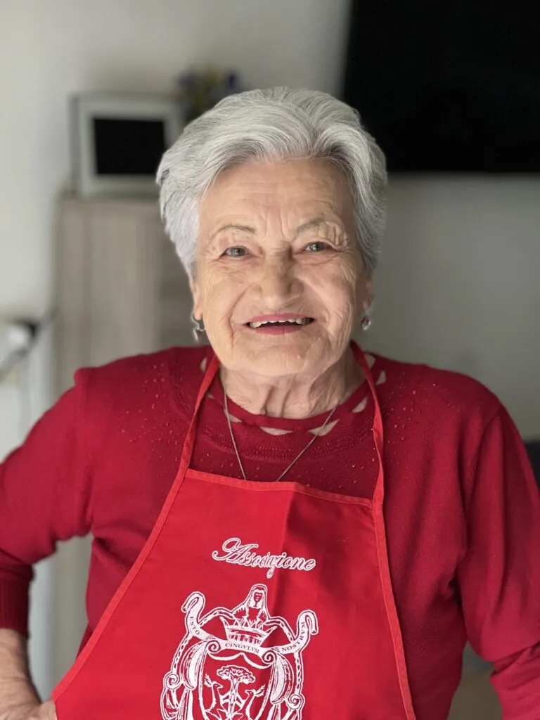 Nonna Rita used to work in a factory, with sewing machines, and then she worked as a school caretaker for 35 years so she’s very nifty with her hands. In her retirement, she loves to watch skiing even though she’s never tried out her ski legs. When she’s not in front of the box, she’s preparing food for her family and friends. Her vegetarian dish with potatoes, onions, and cabbage is a hearty, filling plate – perfect for anyone who’s about to head up the mountain. And honestly, we recommend making this dish before tuning in to the slalom competition, you’ll work up an appetite just watching them.