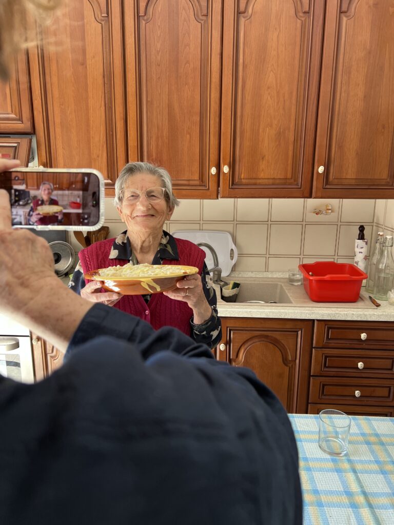 Filming began with Bruna, 78, who welcomed us warmly into her home. It also happened to be her birthday, so before any cooking could begin, there was singing. Not subtle singing, but something of an enthusiastic and slightly off-key chorus.