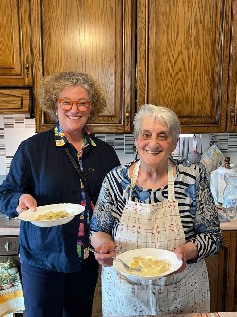 She continues to prepare it today, shaping it much like orecchiette and serving it with bruss and potatoes. She also showed us her garden, filled with plants she has grown over the years. Having worked in greenhouse cultivation, especially with carnations, she still tends them with great care. And Livia, our resident gardener, made sure to leave with a couple of clippings too!