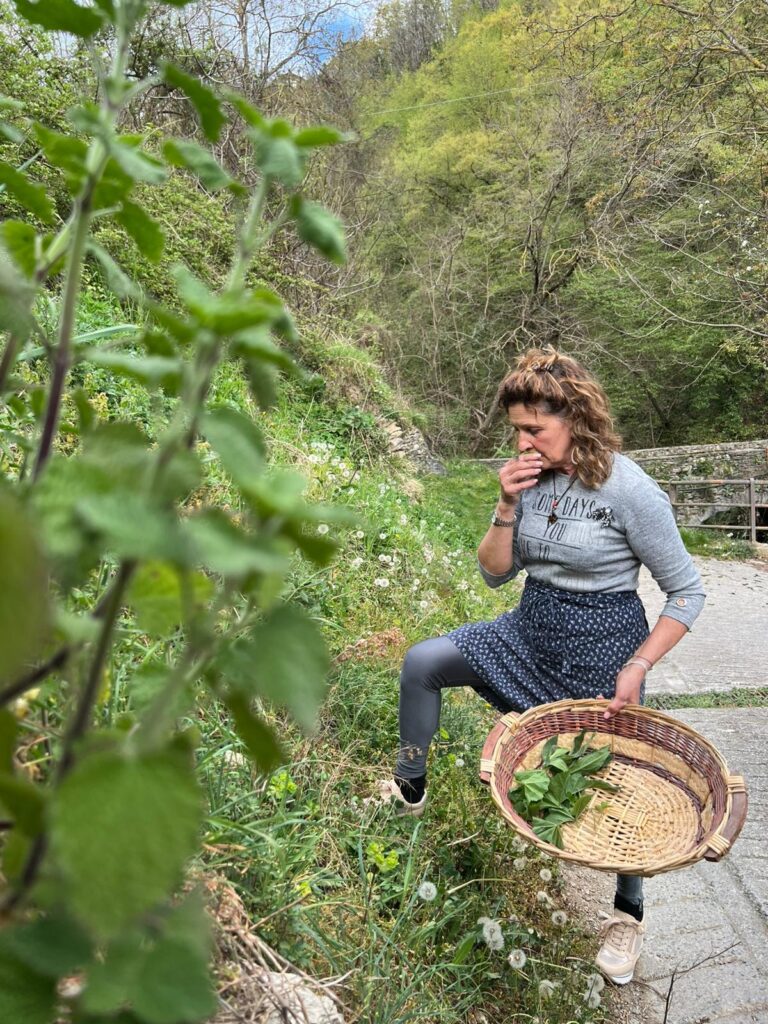 The following day, in Montegrosso Pian Latte, we cooked with Teresa. She gathered wild herbs before preparing another type of ravioli, this time filled with at least thirteen varieties of the products of her green fingers.