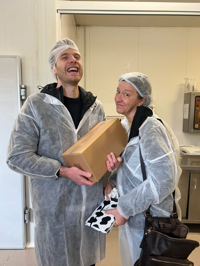 We later visited the La Bruna dairy to see how this Castelmagno is made. Tasting it at different stages of ageing felt like watching a personality develop (and some of those were better than others). It begins mild, and gradually becomes more assertive, until it is very clearly in charge (which one of the cheeses do you think each Pasta Grannies team member would be? We debated that amongst ourselves, while naturally, buying far too much of the stuff (so our luggage developed something of a distinct smelling personality too). Alongside this, we were seen sporting some serious trendy head gear while we were at it. Of course there were photo opportunities too, the phrase isn’t ‘say cheese’ for nothing.
